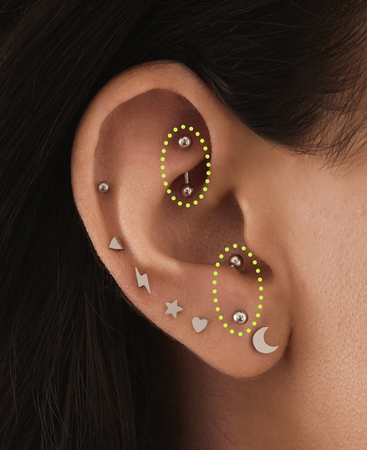 The art and science of personalized ear piercings and earring stacking, resulting in a form of unique self-expression.